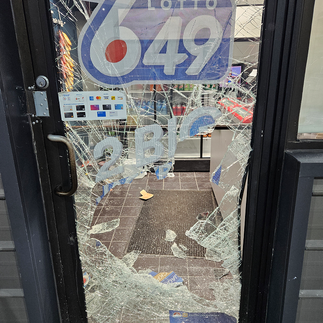At approximately 4:17 a.m. on Monday, Bay St. George RCMP responded to a break and enter at the Bargain Center gas bar on Carolina Avenue in Stephenville. Video surveillance from the incident shows three masked suspects using an item and their feet to smash the front glass window of the store to gain entry. Once inside the suspects caused further damage and stole product before fleeing the scene.