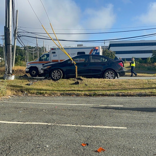 The vehicle that was travelling down Mount Carson Avenue towards Topsail Road did not make his turn to come to the traffic lights at the intersection, the vehicle then travelled through a grassy patch where it crossed over a sidewalk and coming to a stop after colliding with a utility pole on the other side of Topsail Road.